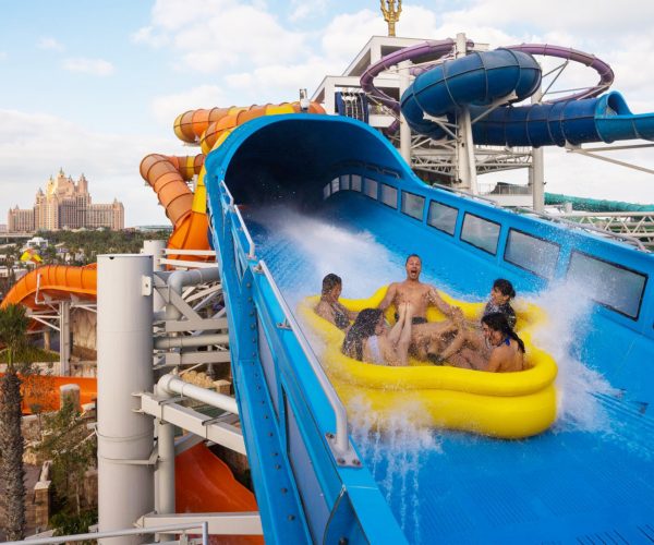 Компания ПроСлайд разработала для аквапарка Atlantis Aquaventure Dubai множество водных аттракционов экстра-класса, не имеющих аналогов в мире. Первая в мире водная горка Мэммот бласт/Летающая тарелка 45/Пауэр ривер— это уникальный скоростной спуск на плотах, а первая в регионе EMEA (Европа, Ближний Восток и Африка) водная горка Дуэлинг пайплайн бласт/Летающая тарелка 20 — это экстремальная водная горка с возможностью кататься наперегонки. Для детей старшего возраста мы специально разработали первую в мире водную горку Кидс башня приключений на основе легендарных водных аттракционов ПроСлайд.
