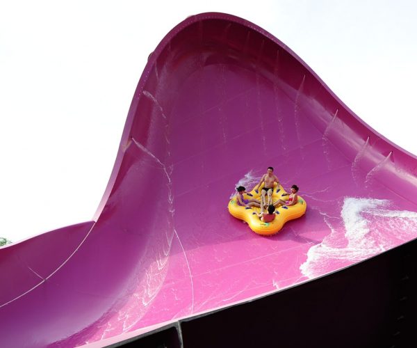 Один из лучших в Пекине аквапарков был просто обязан иметь лучшие водные аттракционы — самые высокотехнологичные и самые экстремальные, чтобы как минимум соответствовать уровню своего предшественника — аквапарка Water Cube. ПроСлайд и Happy Magic Tourism Consulting решили эту задачу с помощью инновационной разработки TornadoWAVE, которая позволяет отдыхающим испытать поистине уникальные впечатления. На этом участке трассы плот разгоняется по дуге, на доли секунды зависает в самой высокой точке, где вы испытываете состояние невесомости, а затем съезжает по почти отвесной стенке, создавая ощущение свободного падения. Благодаря идеальному расположению зоны выката плот немного замедляется перед выездом и только потом въезжает на следующий скоростной участок трассы.