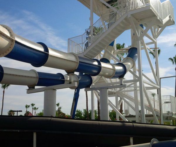 За 13 лет плодотворного сотрудничества Golfland (компания, владеющая Golfland Sunsplash Mesa) и ПроСлайд воплотили в жизнь пять проектов, а это — шесть водных аттракционов в семи разных аквапарках в Аризоне и Калифорнии. Golfland Sunsplash Mesa стал вторым проектом, над которым работала компания ПроСлайд, а до этого мы устанавливали водные аттракционы в аквапарке Golfland Sunsplash Roseville.