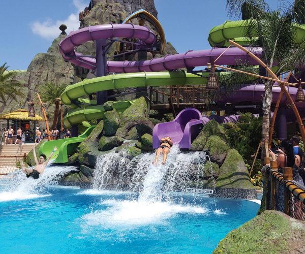 Universal’s Volcano Bay стал образцом для подражания для аквапарков всего мира. Это аквапарк с мировым именем, и почти все его водные аттракционы отмечены множеством престижных наград, причем все они разработаны одной компанией — ПроСлайд.
