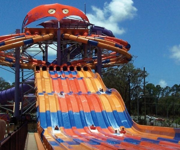 Dreamworld — это самый большой в Австралии тематический парк, поэтому водные аттракционы в его аквапарке должны были соответствовать этому статусу. Мы установили там водные горки Хайдромагнетик рокет, Осьминог рейсер, а также водные аттракционы Dueling Кэннон боул и Бегемот боул 60, причем все они не имели аналогов в Австралии. Отдельно стоит упомянуть о первой в мире водной горке с запатентованной пусковой капсулой скай бокс, которая позволяет отдыхающим стартовать из почти вертикального положения.